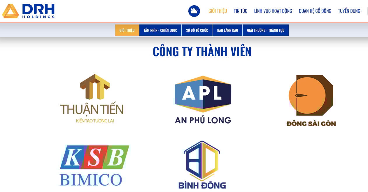 DRH Holdings hoạt động trong các lĩnh vực gồm: bất động sản, vật liệu xây dựng, khu công nghiệp và đầu tư tài chính. Các công ty thành viên của công ty gồm: Thuận Tiến, An Phú Long, Đông Sài Gòn, Bimico và Bình Đông. Tuy nhiên, khi truy cập vào đường dẫn liên kết tới website thì bị lỗi.