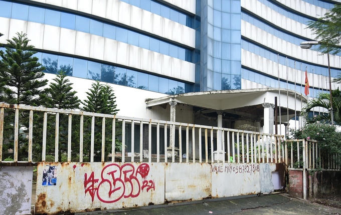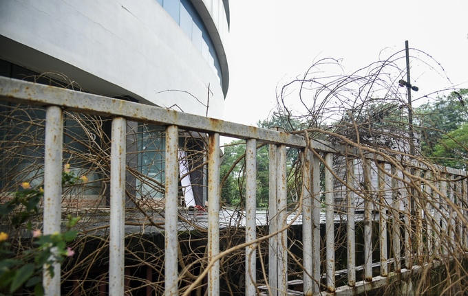 Hình ảnh công trình to lớn nhưng bị bỏ hoang, nhếch nhác, xuống cấp.