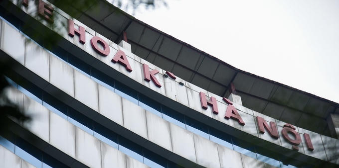 Dòng chữ bệnh viện quốc tế Hoa Kỳ - Hà Nội cũng không còn nguyên vẹn.
