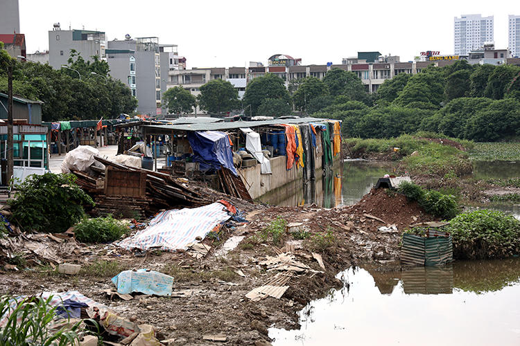 Theo ghi nhận, ở thời điểm hiện tại, hệ thống kênh tiêu nước của dự án mới chỉ hoàn thành theo từng đoạn. Nhiều đoạn quây tôn kín nhưng chưa thi công, có đoạn lòng kênh chỉ còn độ rộng khoảng vài mét vì bị đất đá trong quá trình xây dựng san lấp chiếm dụng. Đồng thời, giữa lòng kênh vẫn còn nhiều đoạn ngổn ngang ụ đất, cản dòng chảy của nước.
