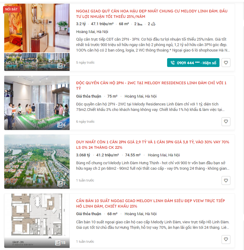 Thời gian qua, thị trường bất động sản xôn xao thông tin dự án căn hộ Hà Nội Melody Residences (Linh Đàm, Hoàng Mai, Hà Nội) giảm giá sâu hàng tỷ đồng/căn hộ, với tỷ lệ chiết khấu cao nhất lên đến 41% giá trị căn hộ, chỉ còn khoảng 30 triệu đồng/m2.