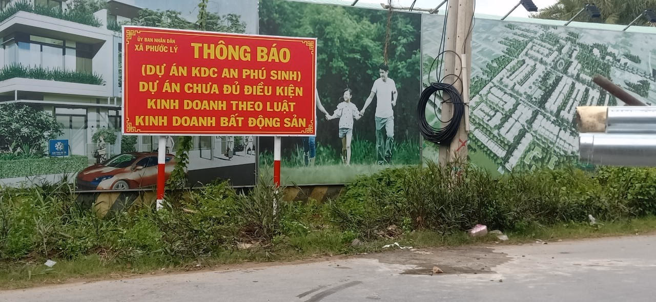 Trái ngược với những lời quảng cáo có “cánh” từ chủ đầu tư cũng như đơn vị phân phối, ghi nhận thực tế, dự án chỉ đang là bãi đất trống, được quây tôn, một số vị trí trong dự án chưa được san lấp mặt bằng, cây cối um tùm. Ghi nhận vào ngày 1/8/2022, bên cạnh đó dự án là một tấm biển do UBND xã Phước Lý cắm với nội dung thông báo “Dự án khu dân cư An Phú Sinh chưa đủ điều kiện kinh doanh theo luật kinh doanh bất động sản”. Tuy nhiên, kỳ lạ là những ngày sau quay lại, tấm biển cảnh báo đã bỗng nhiên biến mất.