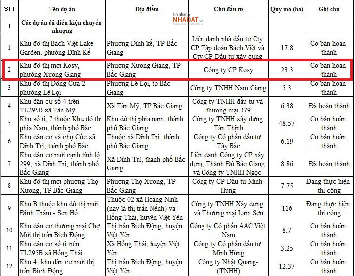 Mới đây, Sở xây dựng tỉnh Bắc Giang đã thống kê các dự án nhà ở, khu đô thị, khu dân cư mới đang đầu tư trên địa bàn tỉnh. Theo danh sách thống kê cập nhật đến ngày 27/7, có 33 dự án đủ điều kiện chuyển nhượng, 28 dự án chưa đủ điều kiện. Đáng chú ý, trong danh sách này có sự xuất hiện của dự án Khu đô thị (KĐT) Kosy Bắc Giang do Tập đoàn Kosy của ông Nguyễn Việt Cường làm chủ đầu tư (CĐT).