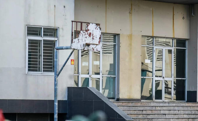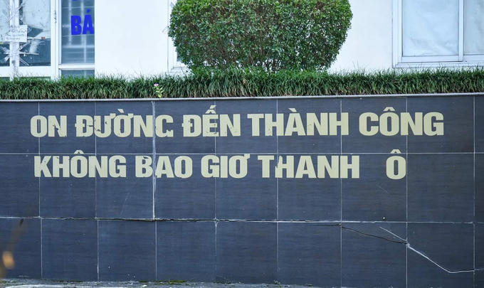 Những dòng chữ, khẩu hiệu trong khuôn viên cũng không còn nguyên vẹn.