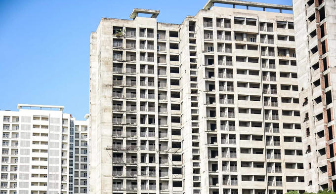 Hiện tại, 4 khối nhà tại khu Ký túc xá Pháp Vân - Tứ Hiệp đã xây xong phần thô nhưng nằm trơ khung nhiều năm nay.