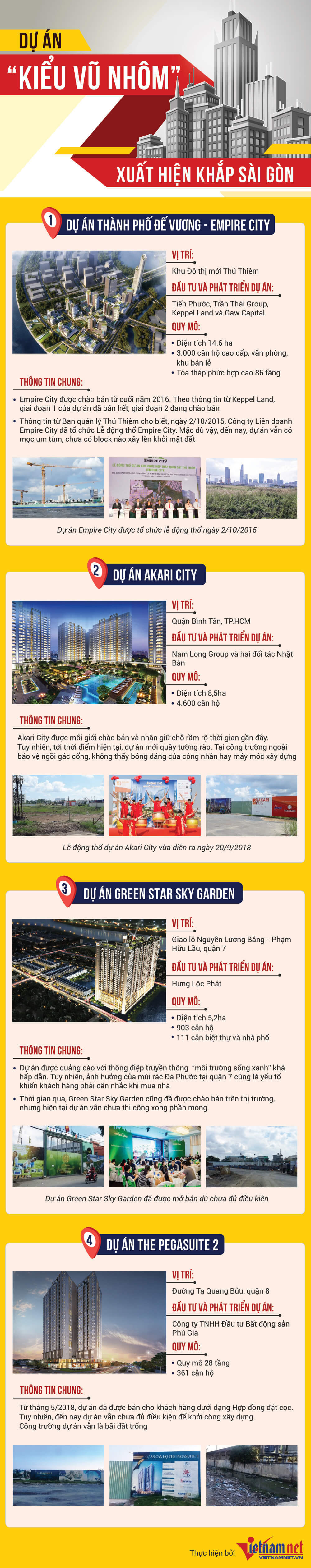 Dự án “kiểu Vũ nhôm” xuất hiện khắp Sài Gòn Rao bán rầm rộ khi chưa đủ điều kiện huy động vốn, 1 dự án liên quan đến Vũ “nhôm” vừa bị Sở Xây dựng thành phố Đà Nẵng tuýt còi. Những dự án kiểu này cũng đang xuất hiện nhiều nơi ở Sài Gòn. Thứ Tư 31/10/2018 08:27 (GMT+7) Theo Quốc Tuấn - Đồ họa: Thu Hằng/VietNamNet