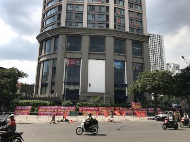 Ngày 26/6 vừa qua, cho rằng chủ đầu tư đang có dấu hiệu lừa dối, hàng trăm cư dân của dự án King Palace đã hô hào căng kín băng rôn trước mặt tòa King Palace 108 Nguyễn Trãi, đề nghị chủ đầu tư hoàn thiện dịch vụ và tiện ích, bàn giao sổ hồng và tổ chức hội nghị nhà ở đúng pháp luật.