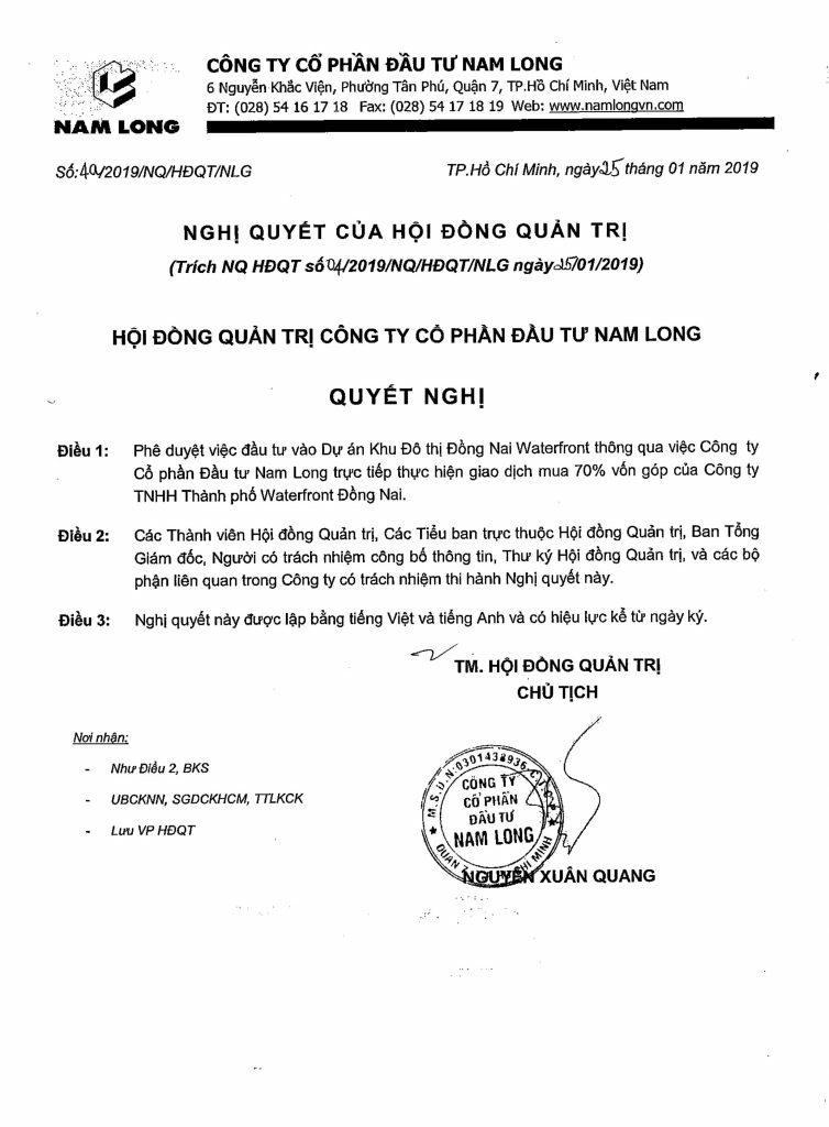 Giá trị của thương vụ này là hơn 2.300 tỉ đồng và thông qua đó Nam Long sẽ triển khai đầu tư 170 héc ta đất của dự án Dong Nai Waterfront City.