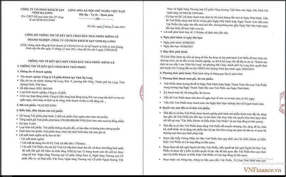 Vì vậy, chủ đầu đã đẩy mạnh các hoạt động huy động vốn, trong đó trái phiếu là một trong những kênh được doanh nghiệp tìm đến. Cụ thể, vào ngày 9/8 mới đây, CTCP Khách sạn Vịnh Hạ Long đã chào bán thành công 2.500 trái phiếu có kỳ hạn 4 năm, tương ứng 250 tỷ đồng cho một nhà đầu tư trong nước.