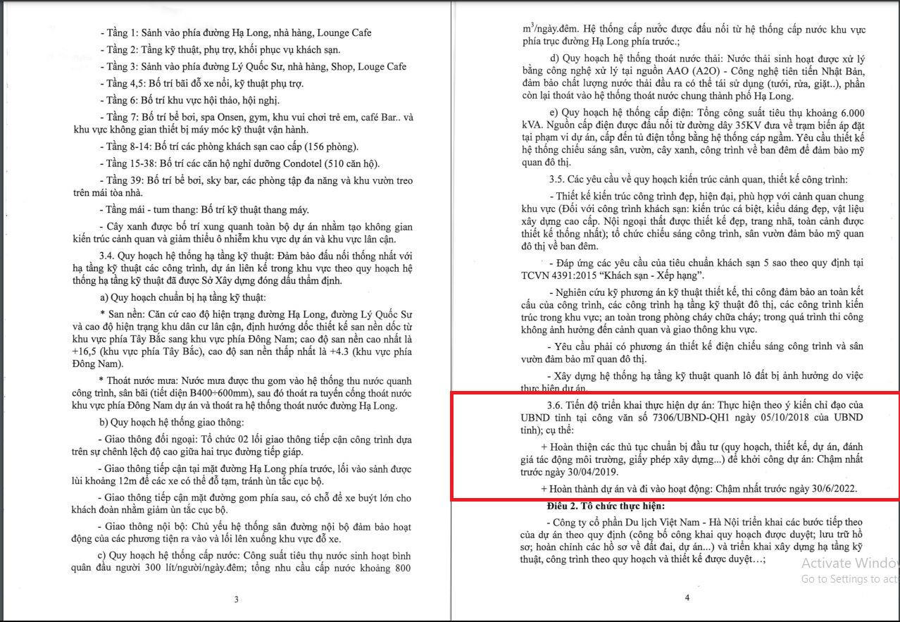 Như vậy, nếu dự án hoàn thành đúng tiến độ theo yêu cầu của UBND tỉnh Quảng Ninh thì đến năm 2022 dự án sẽ đi vào hoạt động, và hạn sử dụng đến năm 2054 thì khách hàng mua bất động sản tại dự án này chỉ được sử dụng, khai thác trong thời hạn 32 năm. Chưa kể dự án có thể gặp trục trặc, sự cố ảnh hưởng đến tiến độ, qua trình triển khai càng kéo dài thì thời gian hoạt động của dự án sẽ càng giảm xuống.