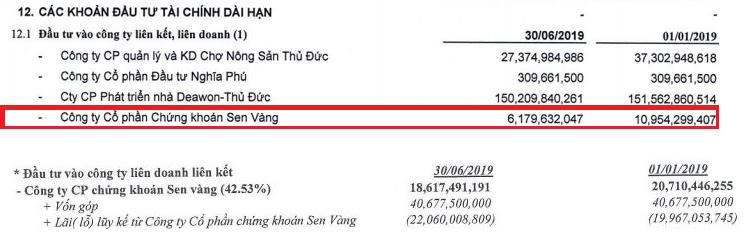 Tại ngày 30/6 theo báo cáo tài chính hợp nhất của Hòa Bình thì Tập đoàn đã lỗ lũy kế tới 22 tỷ đồng khi đầu tư vào Chứng khoán Sen Vàng còn khoản góp vốn của Nhà Thủ Đức tại đây ngày một teo tóp chỉ còn giá trị hơn 6 tỷ đồng hết quý II.