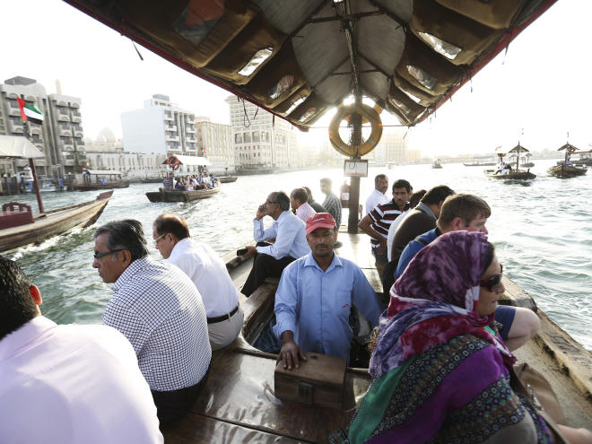 Những người lao động đi lại bằng thuyền trên một con kênh trong khu Dubai "cũ". Đây từng là con đường các thương nhân Dubai từng qua lại cả trăm năm trước.