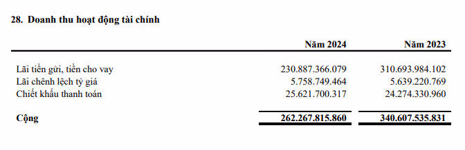 Điều đáng chú ý là, tiền gửi ngân hàng liên tục tăng, nhưng doanh thu hoạt động tài chính (lãi tiền gửi, tiền cho vay) của doanh nghiệp lại suy giảm từ 310 tỷ đồng xuống còn 230 tỷ đồng.