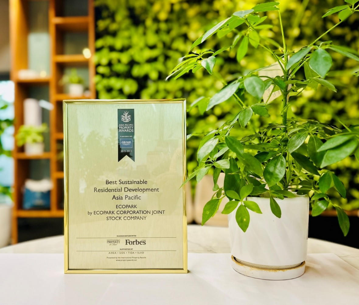 Tại London (Anh Quốc), International Property Awards - Giải thưởng BĐS lớn nhất thế giới vừa công bố vinh danh Khu đô thị Ecopark là Dự án phát triển nhà ở bền vững xuất sắc nhất Châu Á năm 2022.
