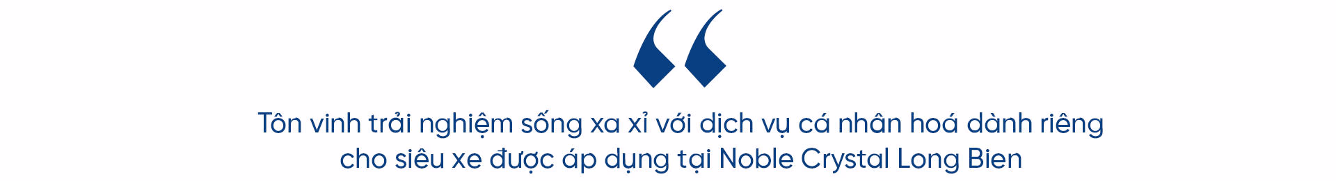 Lấy riêng tư là giá trị đầy tự hào, Noble Crystal Long Bien không chỉ thỏa mãn bản ngã độc tôn của gia chủ trong những không gian sống xa hoa mà còn thấu hiểu và chăm chút đến từng sở thích cá nhân, từng thói quen sinh hoạt hằng ngày của cộng đồng cư dân tinh hoa. Đây có thể xem là một trong những dự án hàng hiệu hiếm hoi ở Việt Nam đã thiết lập dịch vụ cá nhân hoá dành riêng cho siêu xe với công nghệ hiện đại bậc nhất, bên cạnh dịch vụ quản lý vận hành theo tiêu chuẩn 5 sao quốc tế.