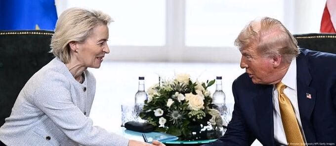 Thỏa thuận thương mại giữa EU và Mỹ được công bố sau cuộc gặp giữa Chủ tịch Ủy ban Châu Âu Ursula von der Leyen và Tổng thống Mỹ Donald Trump tại Scotland. Theo thỏa thuận, hầu hết hàng hóa EU nhập khẩu vào Mỹ, bao gồm ô tô, thiết bị bán dẫn và dược phẩm, sẽ chịu mức thuế suất 15%.