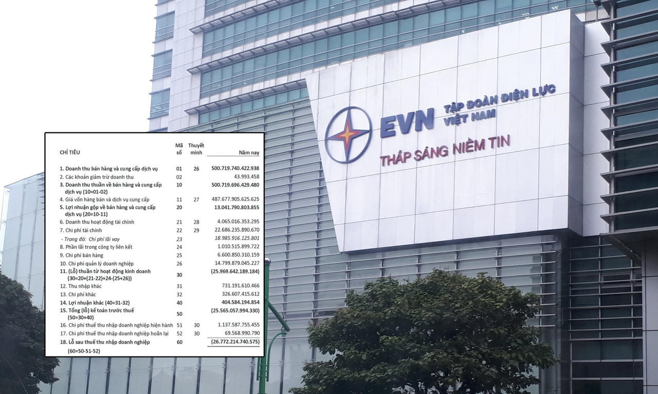 Dù thu về hơn 500.000 tỷ đồng trong năm 2023, nhưng Tập đoàn Điện lực Việt Nam (EVN) vẫn báo lỗ sau thuế 26.772 tỷ đồng.