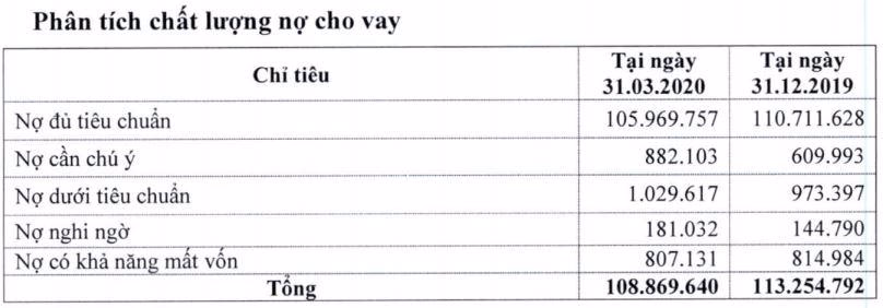 Nguồn: BCTC hợp nhất quý 1/2020.