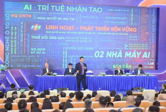 Ông Nguyễn Văn Khoa, Tổng Giám đốc FPT cho biết, kế hoạch kinh doanh thông qua vào tháng 1/2025 trước thời điểm các vấn đề thuế quan nêu ra (đầu tháng 4/2025). “Đây là kế hoạch thách thức, chúng tôi không chủ quan, Việt Nam chịu nhiều ảnh hưởng vĩ mô, chúng tôi theo sát thực tiễn và đưa kịch bản kịp thời. Đề xuất ĐHĐCĐ uỷ quyền cho HĐQT điều chỉnh kế hoạch kinh doanh nếu cần thiết”, ông Khoa nói.