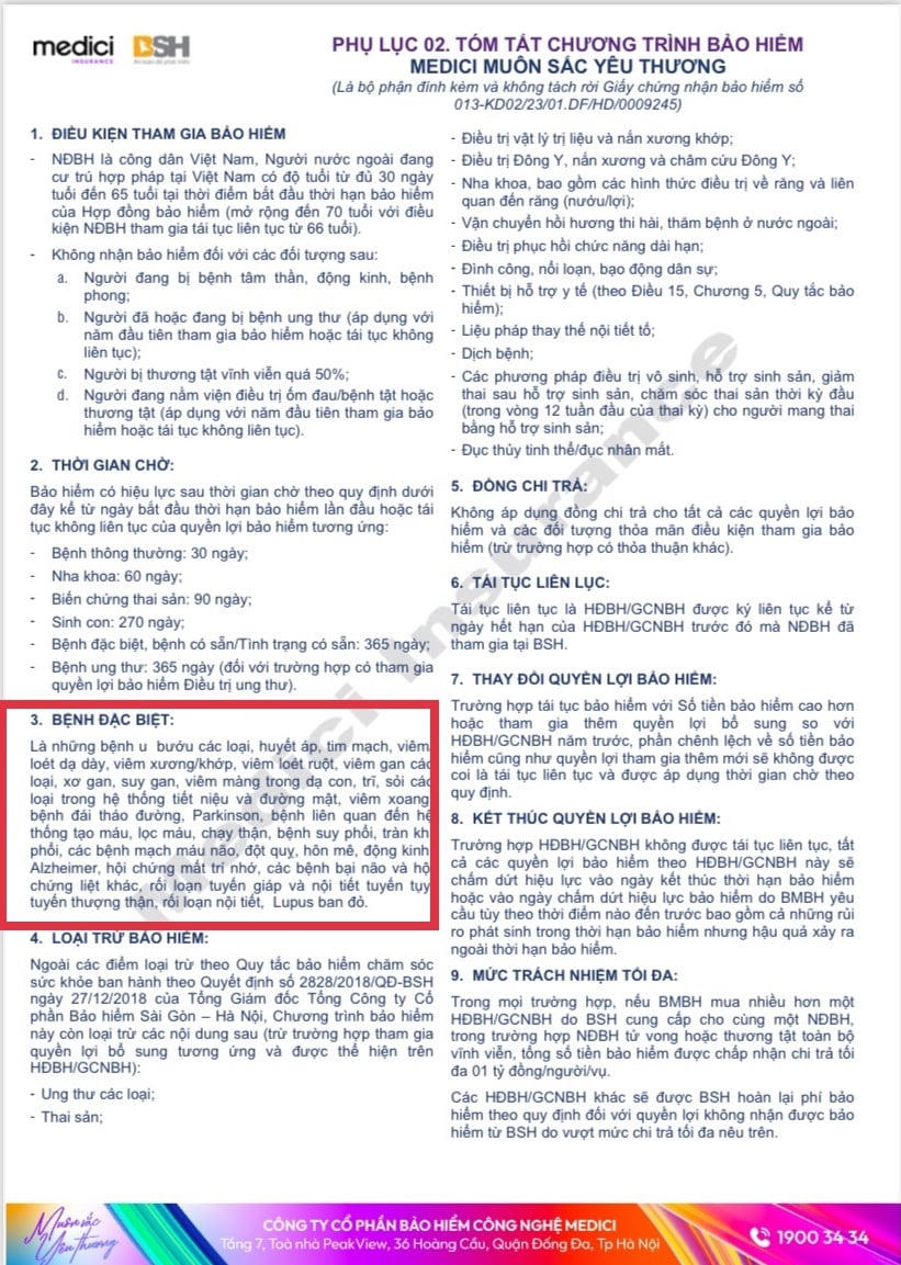 Đến ngày 21/10/2023, Medici – đơn vị phân phối sản phẩm BSH đã đưa ra kiến nghị với BSH rằng, đồng ý với quan điểm của khách hàng đã giải trình là trước đó chưa biết trước về bệnh thoát vị bẹn, không đủ căn cứ tính là bệnh có sẵn, Medici đề nghị BSH xem xét lại sự việc và bồi thường cho khách hàng.