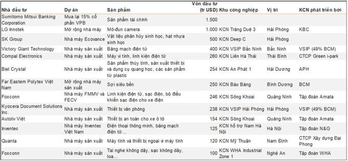 Các dự án FDI nổi bật tính tới tháng 9/2023. (Nguồn: VNDirect Research)