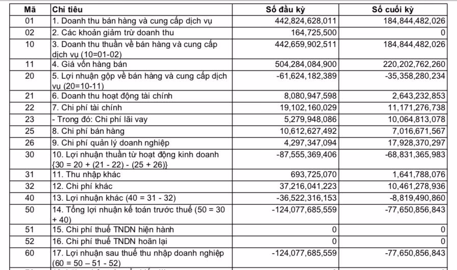 Tuy nhiên, bước sang năm 2022, công ty ghi nhận lợi nhuận gộp âm tới hơn 61,6 tỷ đồng. Tới năm 2023, con số này là âm hơn 35,3 tỷ đồng (giảm lỗ hơn 26,26 tỷ đồng).