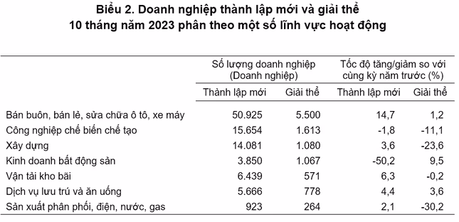 Trong khi đó, số doanh nghiệp bất động sản thành lập mới đạt 3.850, giảm 50,2% so với cùng kỳ.