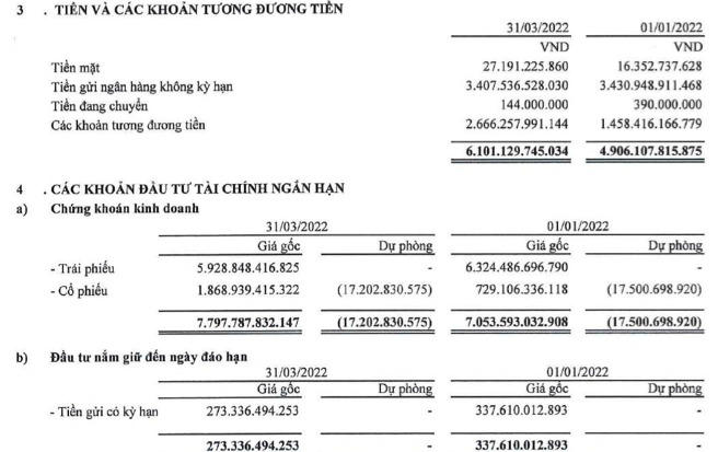 Đang là “con nợ” lớn, nguồn vốn của Gelex có những gì? Gelex thông báo sẽ lấy nguồn tiền từ hoạt động kinh doanh và đầu tư của công ty để mua lại trái phiếu. BCTC quý 1/2022 ghi nhận tiền và tương đương tiền của công ty đến 31/3/2022 đạt hơn 6.100 tỷ đồng, trong đó có 3.400 tỷ đồng tiền gửi không kỳ hạn tại ngân hàng và gần 2.700 tỷ đồng các khoản tương đương tiền. Các khoản đầu tư tài chính ngắn hạn của công ty đạt hơn 8.050 tỷ đồng trong đó có hơn 5.900 tỷ đồng đầu tư vào trái phiếu và gần 1.900 tỷ đồng đầu tư vào cổ phiếu; tiền gửi ngân hàng có kỳ hạn chỉ chưa đến 300 tỷ đồng.