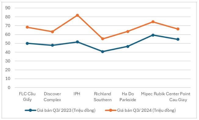 Tại Hà Nội, giá căn hộ tại quận Cầu Giấy trong bán kính 500m so với các nhà ga thuộc tuyến metro Cầu Giấy - Nhổn đã tăng trên 40% trong vòng một năm, từ quý III/2023 đến quý III/2024.