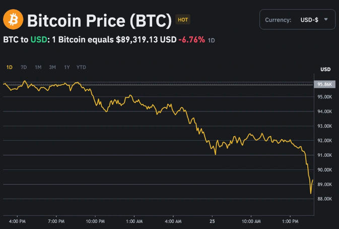 Giá Bitcoin bất ngờ bị bán tháo và lao dốc mạnh vào rạng sáng 25/2 (giờ Việt Nam), theo dữ liệu từ CoinMarketCap.
