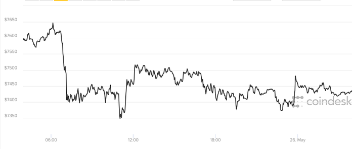 Giá bitcoin hôm nay 26/5 đang ở dưới mức 7.450 USD