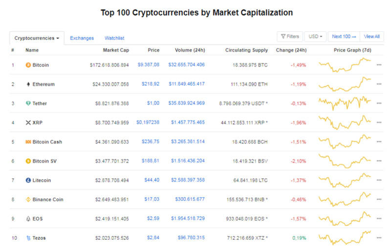 Hôm nay ngày 30/5, theo ghi nhận vào thời điểm 7h35, thị trường tiền ảo rực sắc đỏ. Giá Bitcoin hiện giao dịch ở mức 9.387,08 USD/BTC, giảm 1.49% giá trị trong 24 giờ qua. Trong top 10 đồng tiền ảo đứng đầu thị trường, chỉ có duy nhất 1/10 đồng tiền đang tăng, còn lại 9 đồng tiền khác đều giảm điểm.