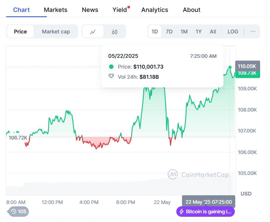 Với mức tăng hơn 2% trong ngày, Bitcoin đang củng cố vị thế là tài sản hấp dẫn trong bối cảnh nhà đầu tư toàn cầu tìm kiếm kênh sinh lời mới giữa những biến động của thị trường truyền thống.