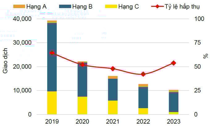 Trong đó, giá bán căn hộ chung cư bình dân có mức giá từ 25 triệu đồng/m2 - 35 triệu đồng/m2; giá bán căn hộ chung cư trung cấp có mức giá khoảng 35 triệu đồng/m2 đến dưới 50 triệu đồng/m2; giá bán căn hộ chung cư cao cấp (có mức giá trên 50 triệu đồng/m2, phổ biến ở mức giá từ 60-70 triệu đồng/m2.