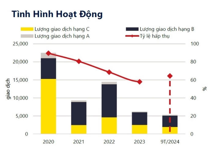 Về phân khúc, hạng B chiếm ưu thế với 60% thị phần, trong khi hạng C chiếm 38% và hạng A chỉ chiếm 2%.