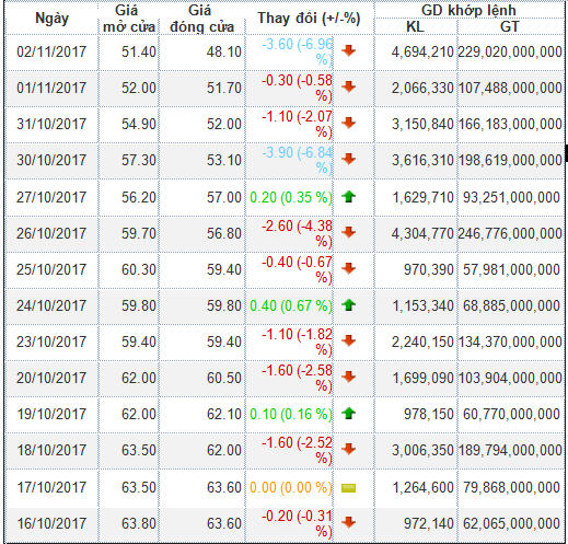 Thống kê lịch sử giao dịch cổ phiếu HBC, kể từ ngày 16/10, cổ phiếu HBC bắt đầu bước vào chuỗi giảm giá.