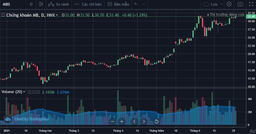 Trên thực tế, từ đầu năm tới nay, MBS là một trong những cổ phiếu tăng mạnh nhất dòng chứng khoán. Kết thúc phiên giao dịch 30/6, thị giá MBS đạt 31.400 đồng/cp, tăng tăng khoảng 83% so với thời điểm đầu năm. Tính theo mức giá này, ông Trần Hải Hà có thể thu về hơn 30 tỷ đồng từ việc bán cổ phiếu MBS.