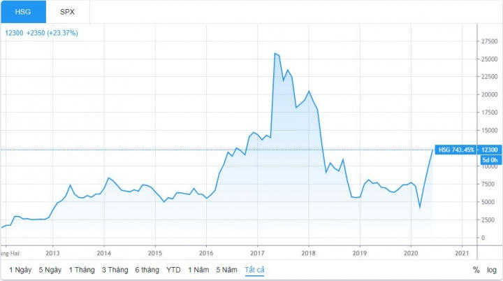 Kết phiên 25/6 cổ phiếu HSG chốt ở 12.300 đồng/cp, tăng gấp gần 2,9 lần từ đầu tháng 4 tới nay.