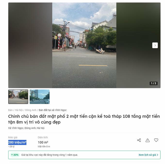 Đặc biêt, theo khảo sát trên trang rao bán bất động sản, một lô đất 100m2 tại Xã Vĩnh Ngọc đang được rao bán với giá khoảng 28 tỷ (tương đương 280 triệu đồng/m2).