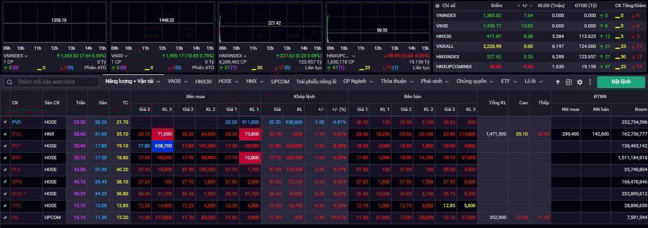 Sáng 23/6, thị trường chứng khoán Việt Nam đã ghi nhận tín hiệu tích cực khi chỉ số VN-Index vượt ngưỡng 1.360 điểm. Tuy nhiên, trái ngược với thị trường chung, nhóm cổ phiếu dầu khí lại đồng loạt lao dốc.