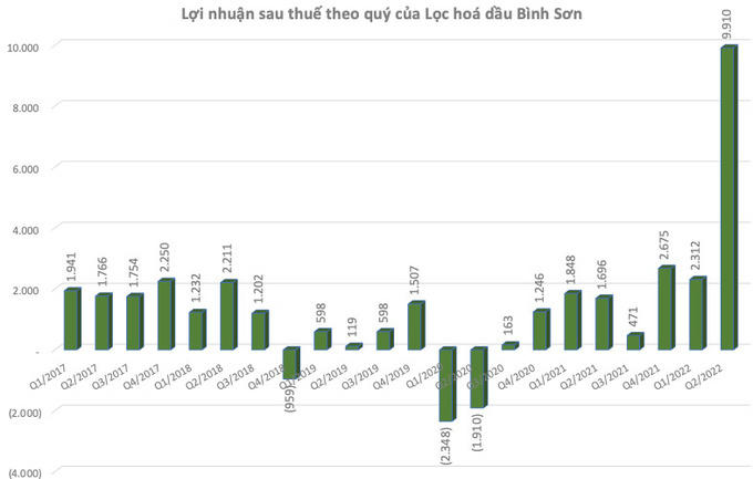 Kết quả, Lọc hoá dầu Bình Sơn ghi nhận lợi nhuận trước thuế 6 tháng đầu năm đạt 12.930 tỷ đồng. Lợi nhuận sau thuế tăng trưởng 246% lên mức 12.222 tỷ đồng.