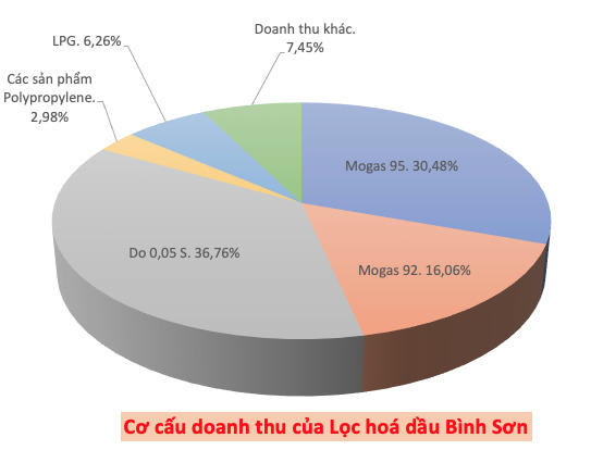Lớn thứ 2 là doanh thu bán xăng Mogas 95, đạt 26.574 tỷ đồng, chiếm 30,5% tổng doanh thu. Mặt hàng Mogas 92 mang về gần 14.000 tỷ đồng doanh thu, chiếm 16% tổng doanh thu. Còn lại là doanh thu đến từ mặt hàng LPG, E5, các sản phẩm Polypropylene, F0…