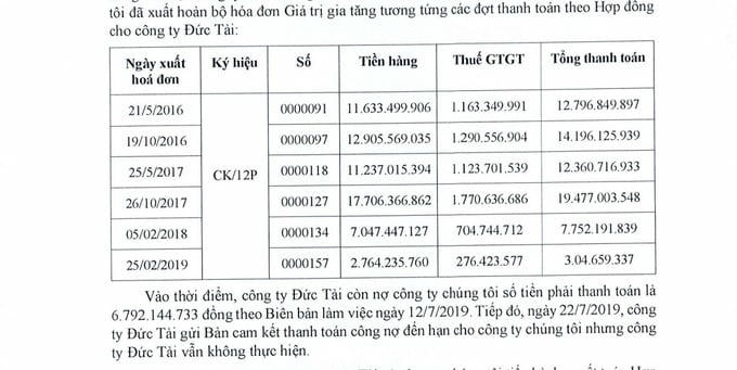 Được biết, đơn phản ánh về hóa đơn, thuế hiện nay đã được gửi đến Cục thuế tỉnh Gia Lai. Bên cạnh đó, Công ty Công Kin cũng đang khởi kiện yêu cầu Công ty Đức Tài phải thanh toán công nợ.