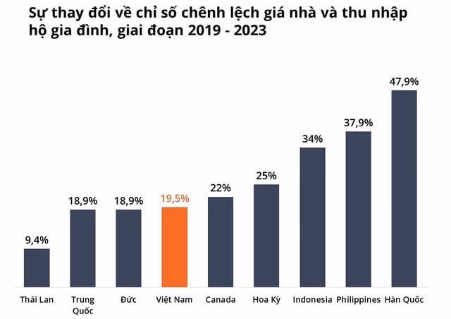 Khảo sát về giá nhà đất tại các nước lân cận với thị trường nhà đất tại Việt Nam, đơn vị nghiên cứu thị trường Avison Young Việt Nam nhận định, trong giai đoạn 2019 – 2023, chỉ số chênh lệch giữa giá nhà và thu nhập hộ gia đình tại Việt Nam tăng 19,5%.