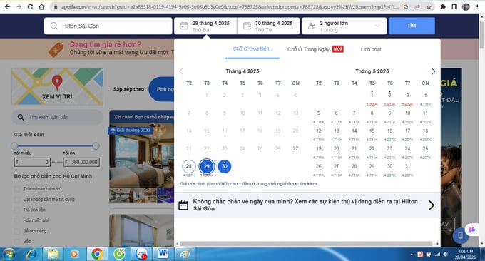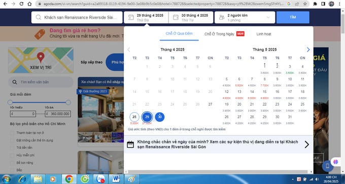 Giá phòng khách sạn tại Tp.HCM dịp lễ 30/4 tăng mạnh