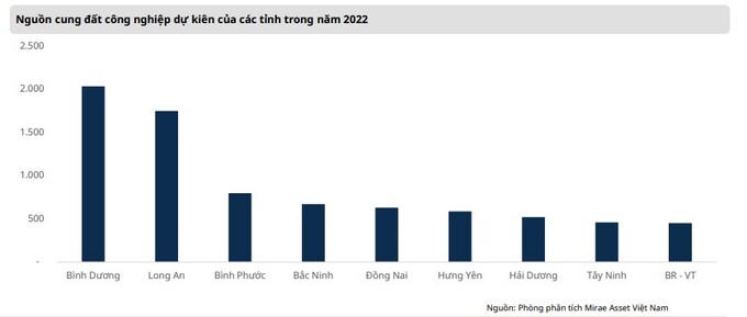 Về tình hình hoạt động thị trường đất công nghiệp, các thị trường cấp 1 ghi nhận tỷ lệ lấp đầy khả quan ở mức từ 80% ở khu vực phía Bắc và 90% ở khu vực phía Nam trong 6 tháng đầu năm 2022. Theo thống kê trong nửa đầu năm, 9 khu công nghiệp (KCN) mới với tổng diện tích 2.472 ha được thành lập. Tổng vốn đầu tư các dự án đạt 29.411 tỷ đồng. Các dự án cũng quy định thời gian xây dựng 3 - 4 năm kể từ khi được thành lập. Do đó, nguồn cung các KCN mới này có thể sẽ đi vào hoạt động vào cuối 2023 đến năm 2025.