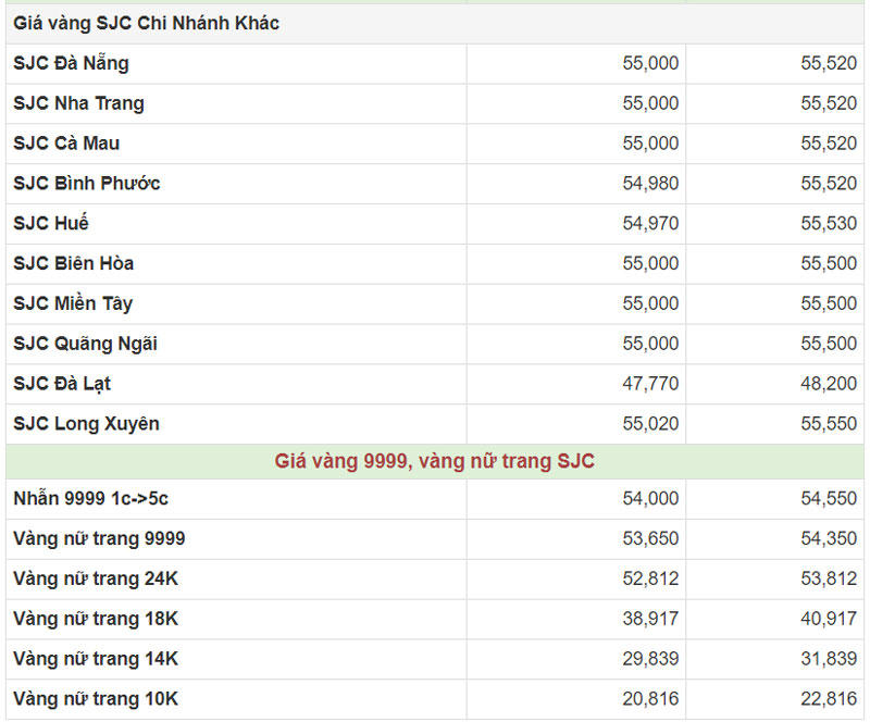 Hiện công ty Vàng bạc đá quý Sài Gòn (SJC) niêm yết giá vàng miếng mua vào ở mức 55 – 55,52 triệu đồng/lượng (mua vào-bán ra).