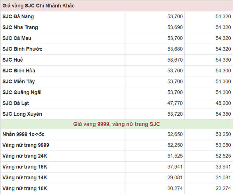 Hiện công ty Vàng bạc đá quý Sài Gòn (SJC) niêm yết giá vàng miếng mua vào ở mức 53,7 – 54,32 triệu đồng/lượng (mua vào-bán ra).