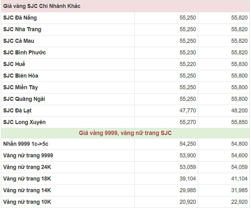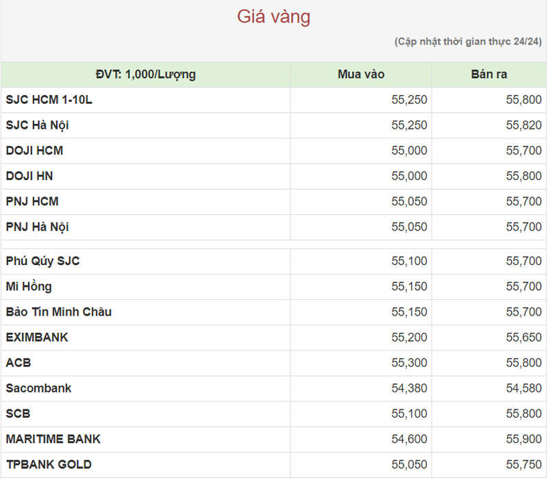 Hiện công ty Vàng bạc đá quý Sài Gòn (SJC) niêm yết giá vàng miếng mua vào ở mức 55,25 – 55,82 triệu đồng/lượng (mua vào-bán ra).