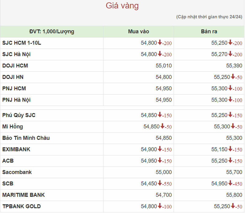 Hiện công ty Vàng bạc đá quý Sài Gòn (SJC) niêm yết giá vàng miếng mua vào ở mức 54,8 - 55,27 triệu đồng/lượng (mua vào-bán ra).